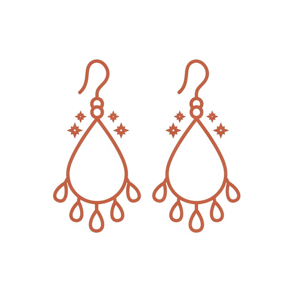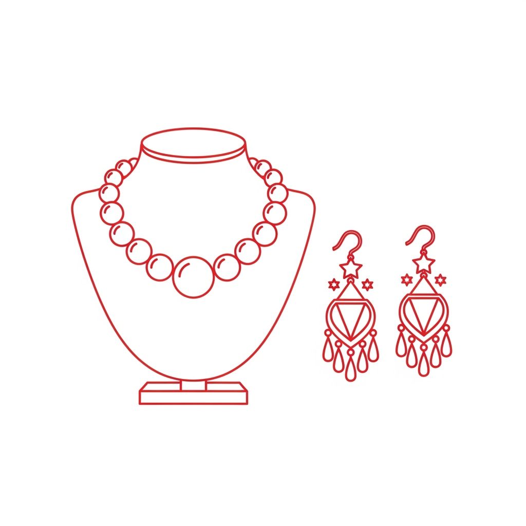 Earrings are decorative pieces, usually made of metal, beads, gemstones, pearls, or imitation materials, that are attached to the earlobe or other parts of the ear through a piercing or clip mechanism