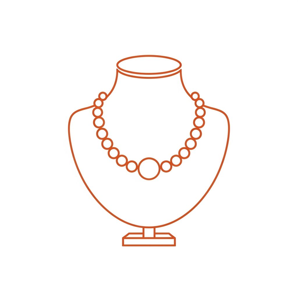 A necklace is an ornamental piece of jewellery worn around the neck. It can be a simple chain or an elaborate design decorated with gemstones, beads, pearls, or pendants